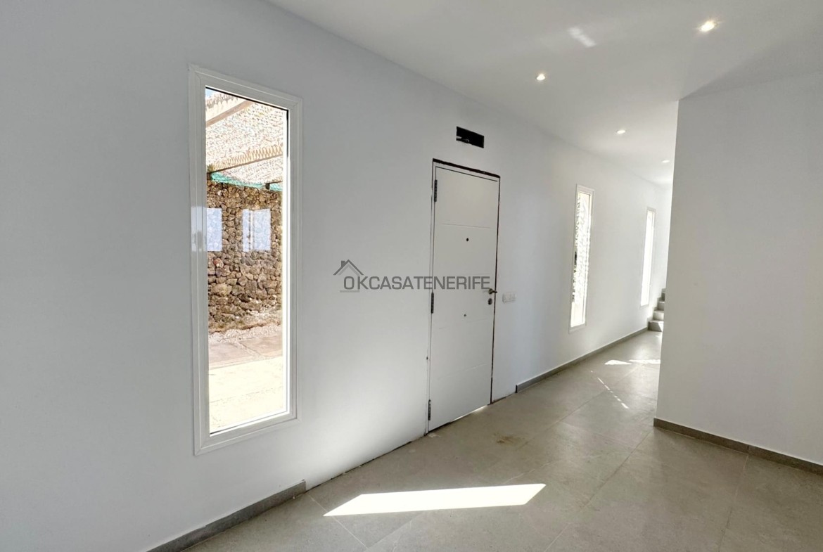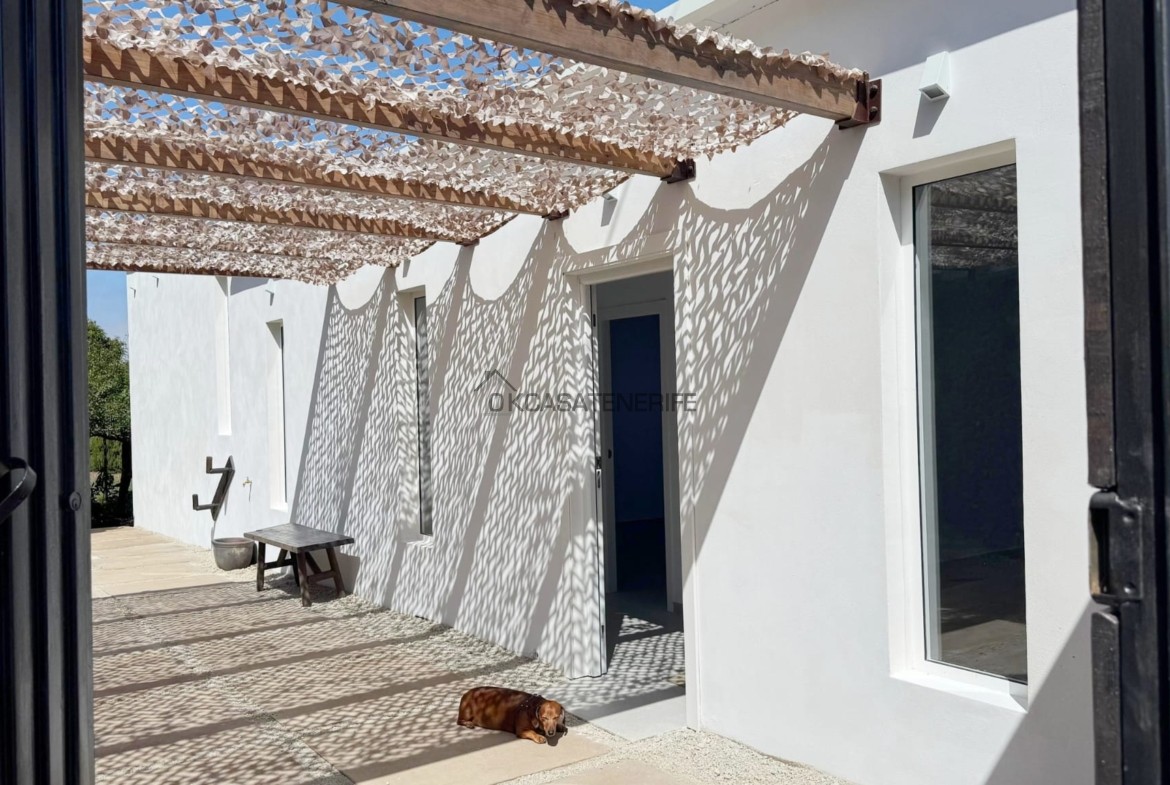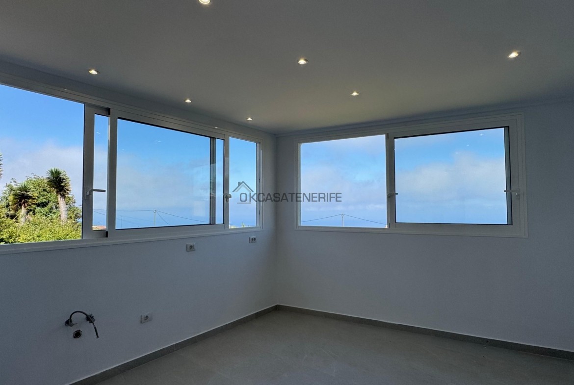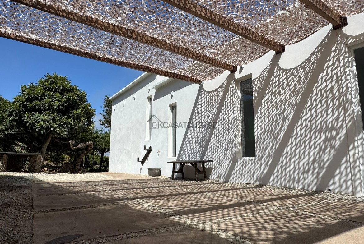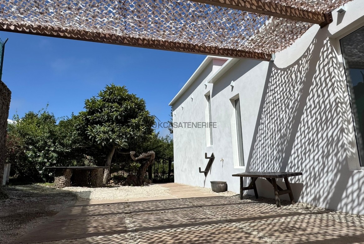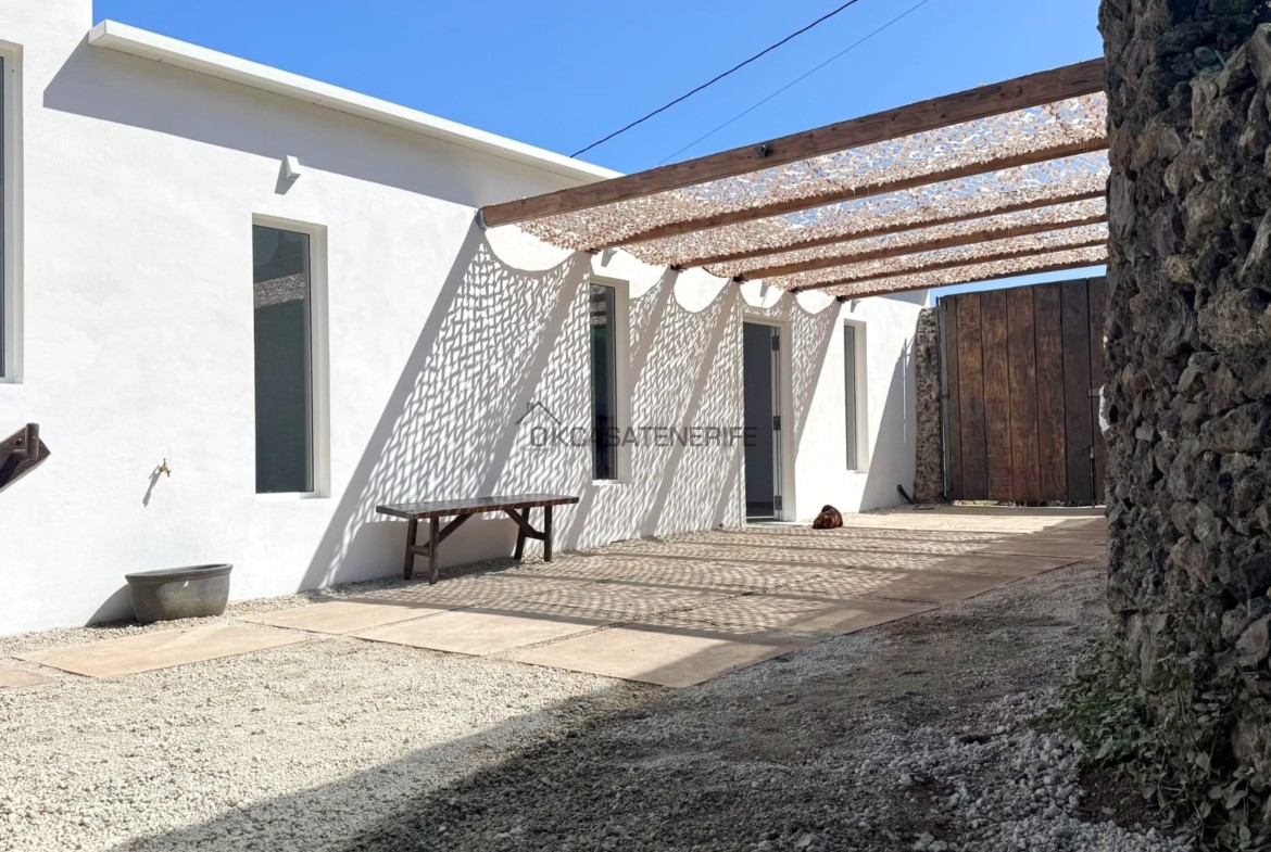 On sale a stunning modern house of 145 m2 with ocean views located in La Vega de Garachico, near the highway exit that will connect very soon the north and south of the island. The original house, built in 2000 (we have got the certificate of obsolescence), was completely renovated in 2025: the roof, the walls, plumbing, and electrical systems were entirely replaced, with a small addition (a notarial deed for the completed new construction has been signed). It sits on an 800 m² urban plot (of which 200 m² are buildable). It has water, electricity, internet, and postal service. It includes an adjacent 3.200 m² flat rural land, suitable for growing various fruit trees: lemon, apple, pears avocado, loquat, etc. The land has great potential as it can be divided into two plots of 2.000 m² each, allowing for the legal construction of another small house of 55 m² on the buildable portion adjacent to the main road.