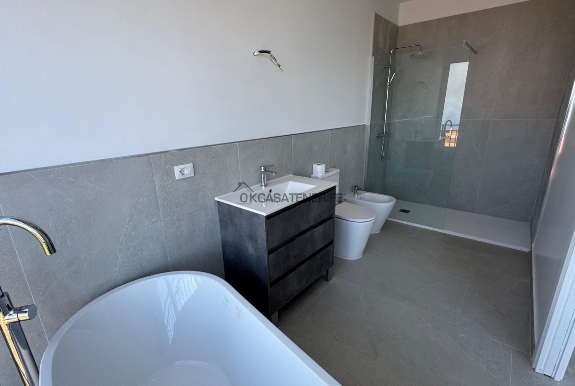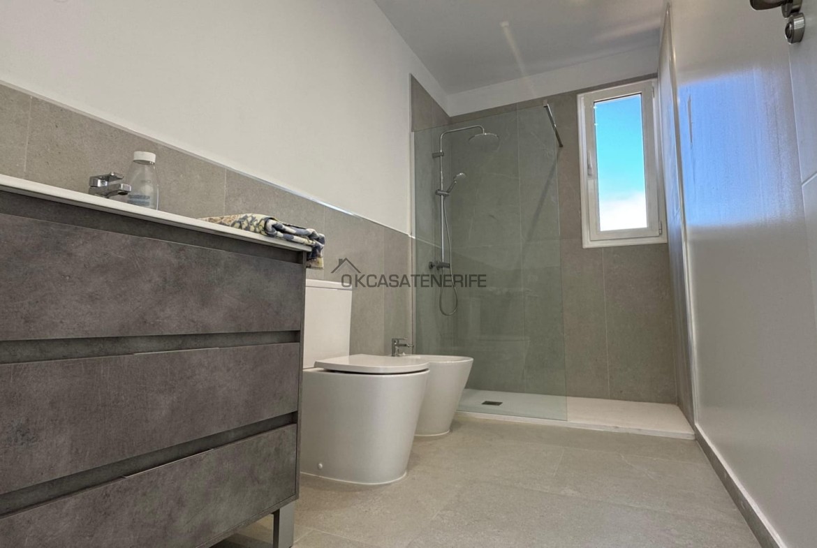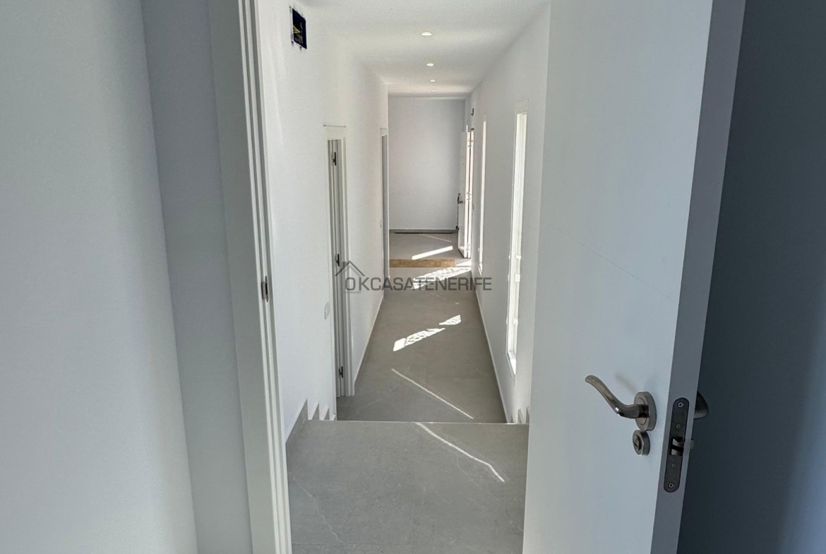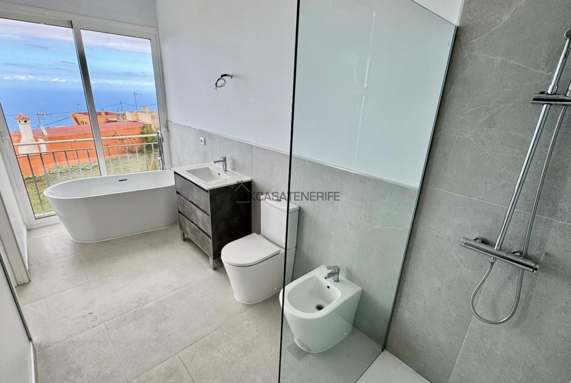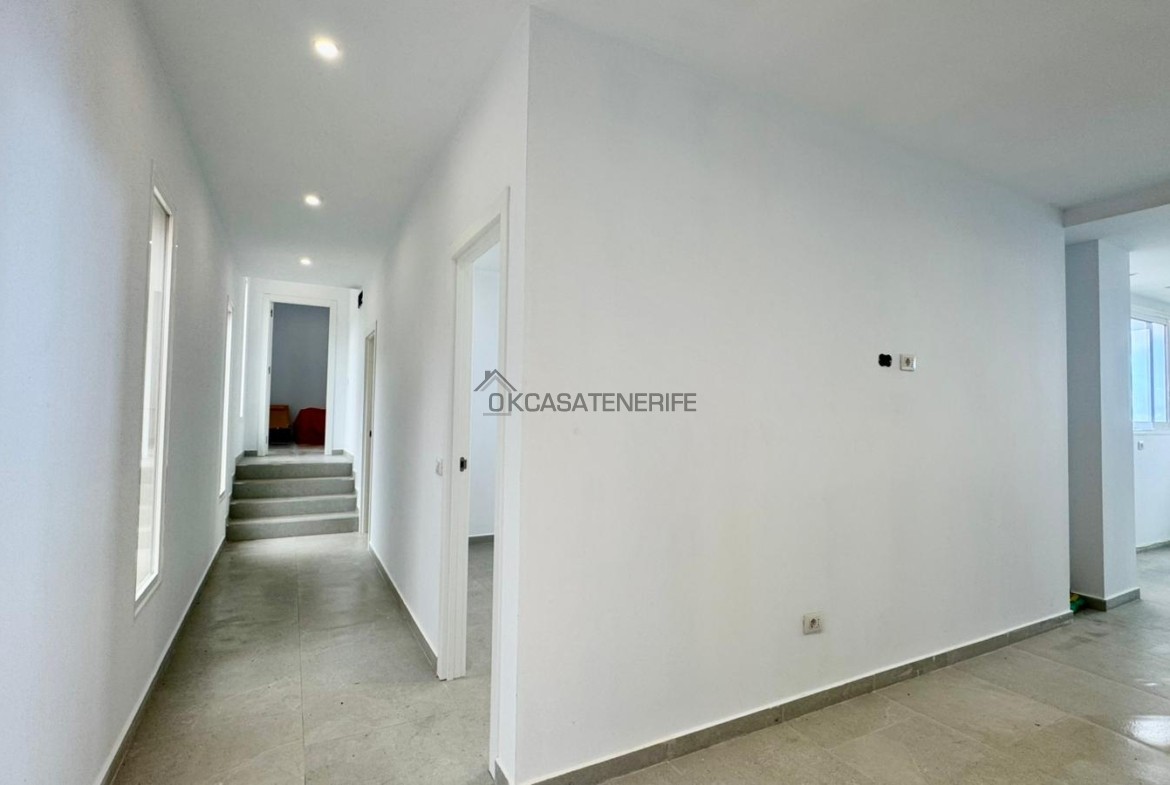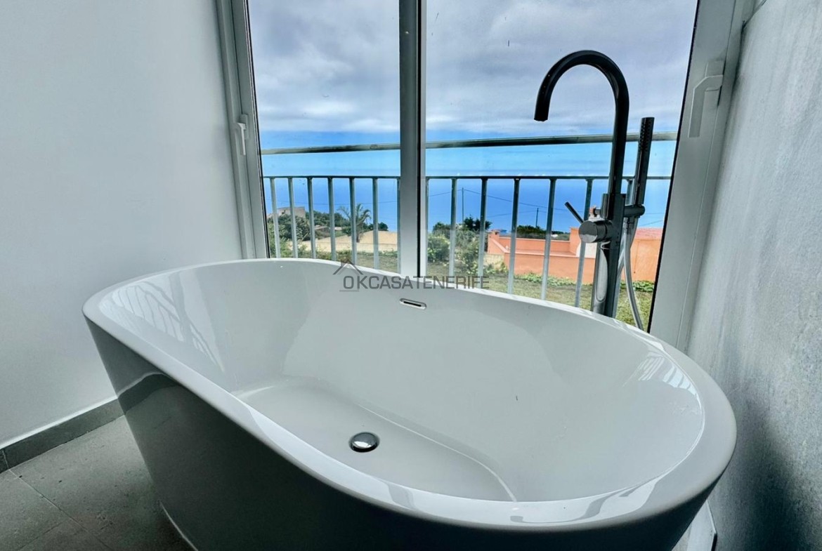 On sale a stunning modern house of 145 m2 with ocean views located in La Vega de Garachico, near the highway exit that will connect very soon the north and south of the island. The original house, built in 2000 (we have got the certificate of obsolescence), was completely renovated in 2025: the roof, the walls, plumbing, and electrical systems were entirely replaced, with a small addition (a notarial deed for the completed new construction has been signed). It sits on an 800 m² urban plot (of which 200 m² are buildable). It has water, electricity, internet, and postal service. It includes an adjacent 3.200 m² flat rural land, suitable for growing various fruit trees: lemon, apple, pears avocado, loquat, etc. The land has great potential as it can be divided into two plots of 2.000 m² each, allowing for the legal construction of another small house of 55 m² on the buildable portion adjacent to the main road.